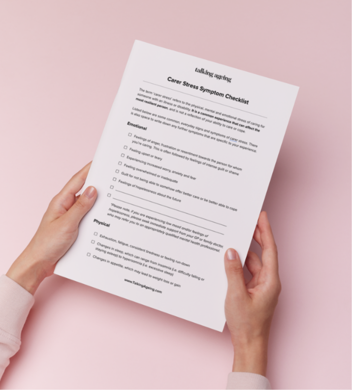 Enter your details below, and I'll send you my Carer Stress Symptom Checklist. Recognise your symptoms of 'carer stress' (physical, mental and emotional stresses).